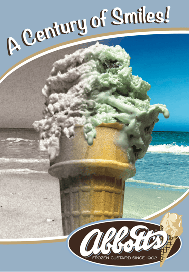 This is a series of unofficial advertisements for Abbott's Frozen Custard, a family-owned ice cream chain local to Rochester, NY. Two different ads are seen here in poster format, backlit sign format, and Instagram post format.