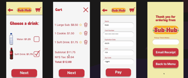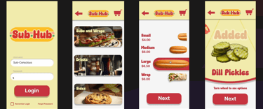 This project is a prototype of an app for a fictional restaurant called "SubHub." This video plays the entire prototype, and the individual screens can be seen below that: